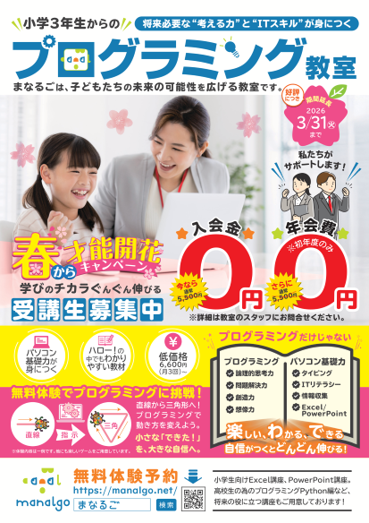 【はじめの一歩を応援!】春のキッズプログミング新規入会キャンペーン実施中